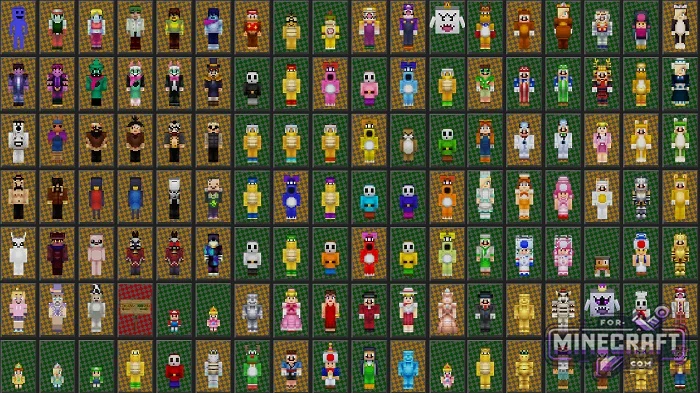 This is a huge collection of over 570 skins for the Bedrock Edition of Minecraft, including 4D and 5D models..