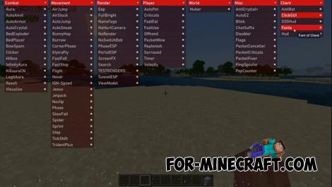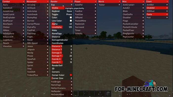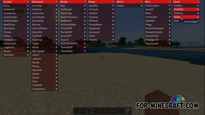 In addition to modules, hacks are available as text commands hidden in the menu. Convenient if you do not want to block the screen with the menu or need precise configs. In general, StrataWare is a lightweight hack client with simple modules that have similarities with other cheats for Bedrock Edition 1.21.