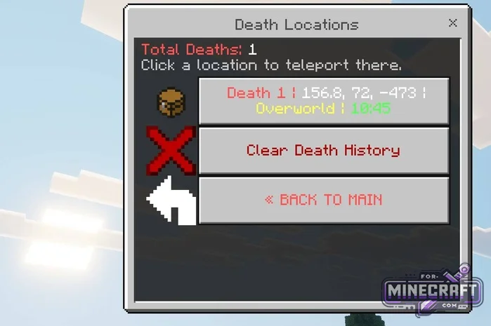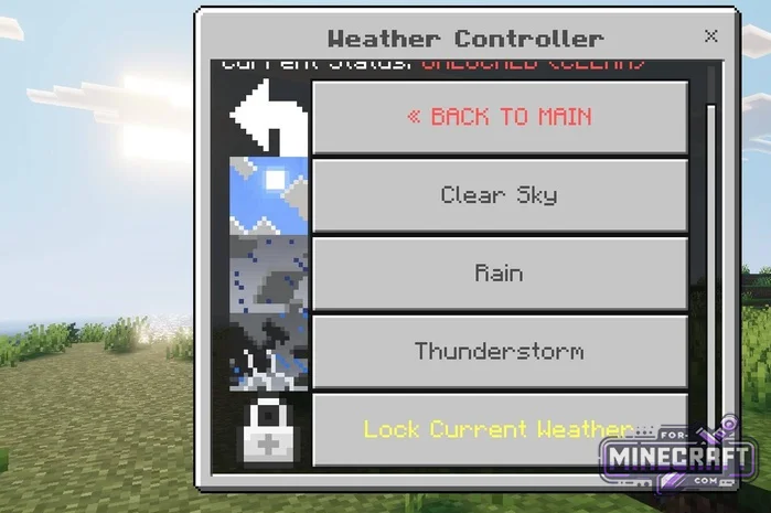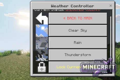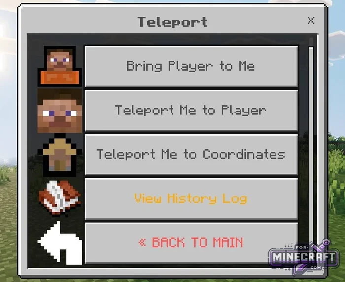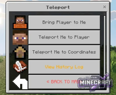 Through the menu, you can instantly change the time of day, control the weather, switch game modes, and there's also a teleportation system with a history of points and an experience manager.