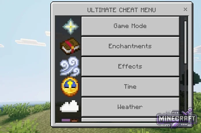 UCM is a tool for those who are tired of entering commands in Minecraft Bedrock, as it now gives you complete control over gameplay with a universal menu. Enabling cheats blocks achievements, but this pack bypasses the restriction, allowing you to use admin functions in survival mode. It's essentially a menu mod for MinecraftPE.