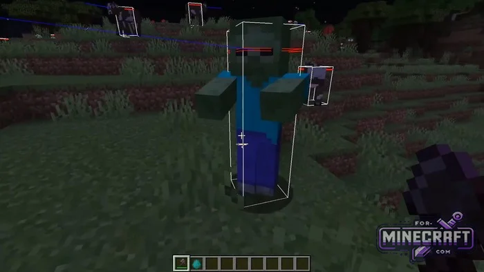 - When you enable the visualizer, every mob within your field of view (within a 100 block radius of you) will be outlined in a clear white box. This is the hitbox-the area where hits are registered.