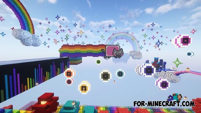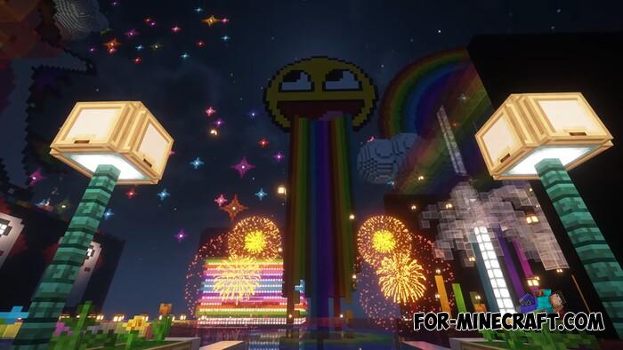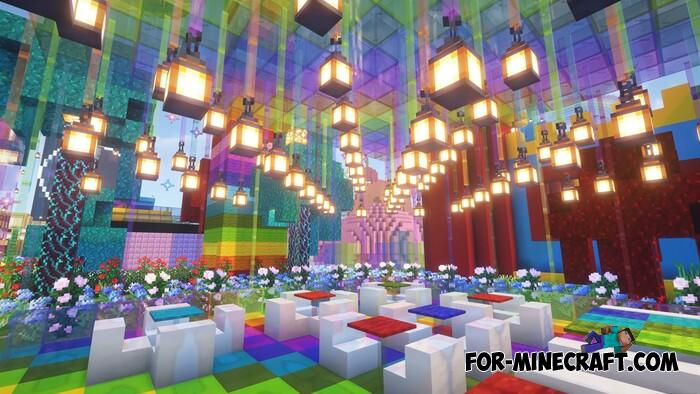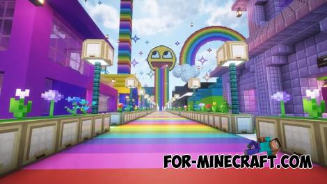 A gigantic rainbow themed map for you and your friends, a server minigame, or even a lobby - this project is worth checking out. Rainbow Item Hunt is a mini-game set in a massive arena. Every structure is designed in vibrant rainbow colors, with many elements inspired by Fall Guys levels.