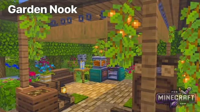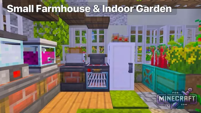 The interior of the houses includes toasters, stoves, refrigerators, and everything you need to store and prepare food. But the cool thing is that you can set up a vegetable garden right behind the kitchen partition. You can grow pineapples and corn in the room if you use special decorative turquoise fence blocks