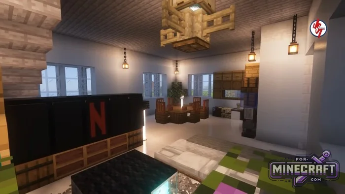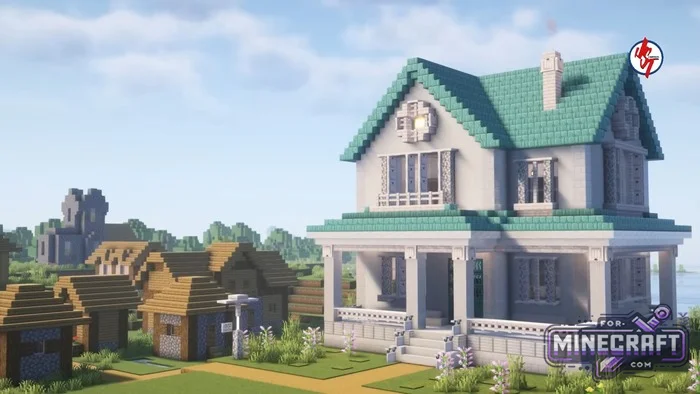 Inside, you'll find everything you need, as well as usefull items (workbenches and furnaces everything is already there). The interior is already decorated and a spawn point has been set up inside. Check out the screenshots to get a better idea of what awaits you both outside and inside. As for the village where your new home is located-the residents houses contrast sharply with it so you'll be able to see it from anywhere in the village.