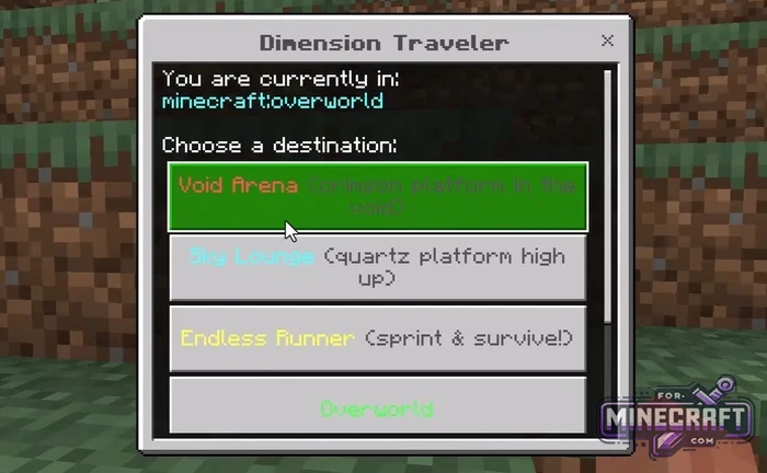 Suppose you want to create a world with a custom dimension. To do this, create a new world, name it, for example "custom dimension 5," select Survival mode, and enable cheats. Next, enable the beta API to use the new features, and after that, you can use a command to travel to the custom dimension, for example "Void Arena."