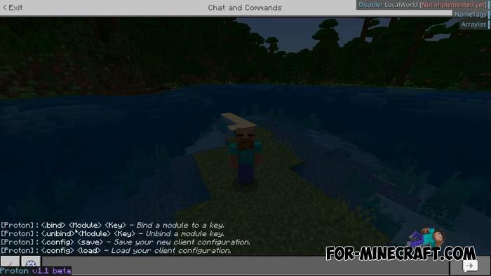 The set of tools is not as extensive as that of modern clients for Bedrock Edition 1.21, but it has everything you need for basic PvP and movement. The Combat section includes Aura, Target Strafe, and Teams, which is a minimal but functional set for close combat.
