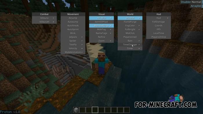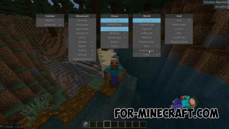 Proton Plus Client runs on the latest version of Bedrock (currently 1.21.122 and 1.21.123) and offers a set of modules that activate slightly non-standard features. For example, zoom, kill auras, custom commands and graphical enhancements.