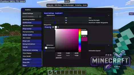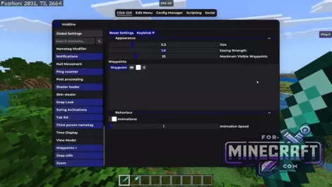 - Any module (coordinates, CPS, ping) can be dragged to any point on the screen.
