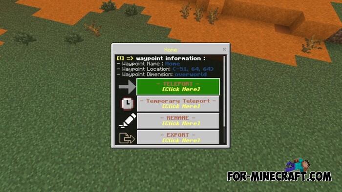 Another handy addon for creating teleport points in Bedrock. Use the recipe to create a waypoint tool.