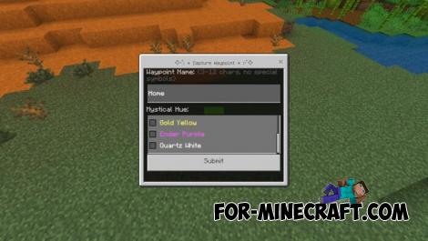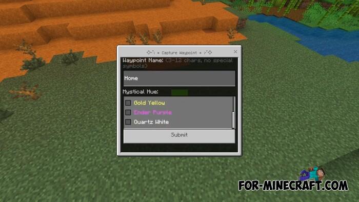 A functionally similar addon with waypoints on board, distinguished by customization and compatibility with survival. Everything is the same as in the first one - craft a waypoint and manage it through the menu.