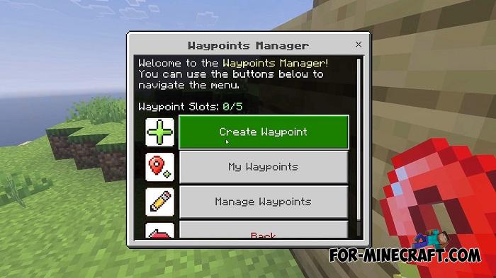 Quite a flexible waypoint system with atypical crafting for survival mode. First you need a cartographer table to craft one. Then creating and editing waypoints is done through the menu, which is very convenient.