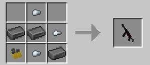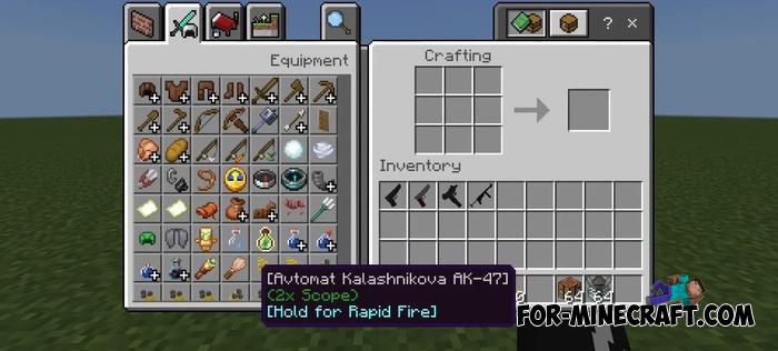 Crafting weapons is done through the new weapon workbench. First, assemble it and then craft weapons for yourself and friends or NPCs if you have other addons for Minecraft Bedrock.