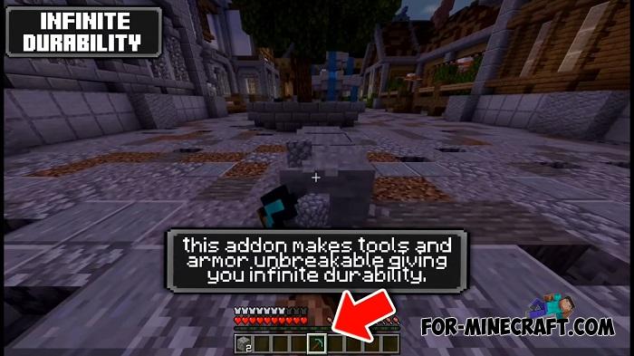 Forget about repairing items in MinecraftBedrock! The No Durability Addon rewrites one parameter for each of the 47 items of weapons, armor, tools and also that which has durability. At the moment when the addon is activated, breakable items in MCPE will receive infinite durability, they can no longer be broken at all.