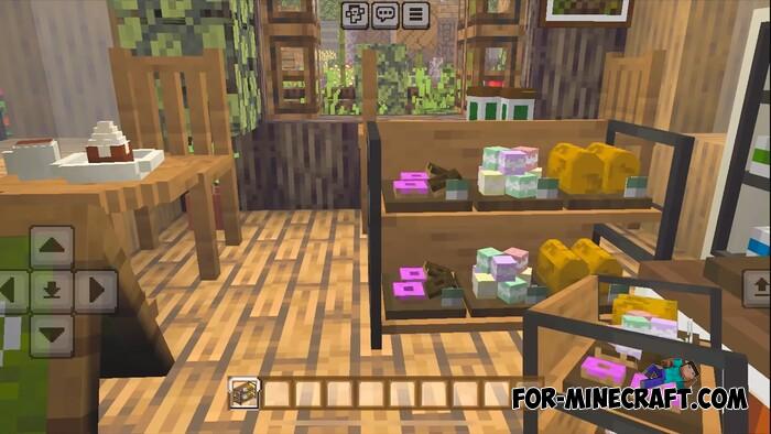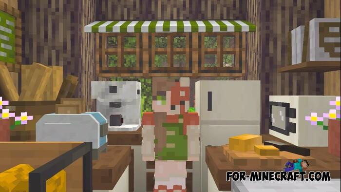 There are all kinds of furniture packs available to help you decorate any space from cozy home interiors to outdoor areas. This time, you'll get a complete set for building and decorating a cafe or similar establishments: the addon includes over 70 pieces of furniture and electronics to help you create the best cafe in Bedrock Edition.