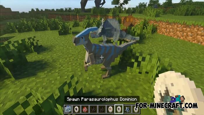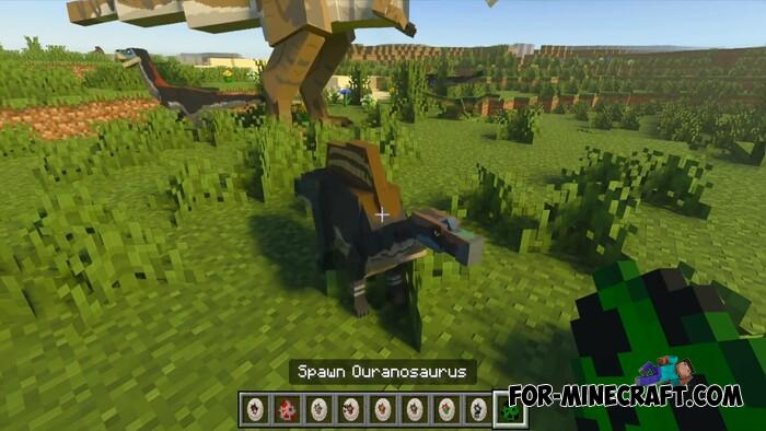 The JW Addon is a list of over 100 dinosaurs that will populate your world as soon as you install it. Unlike the Prehistoric Dominion Park Addon, which also has fences and entire dinosaur defense systems, in the JW Addon all dinosaurs roam freely, and you'll be hard-pressed to catch even a single large one.
