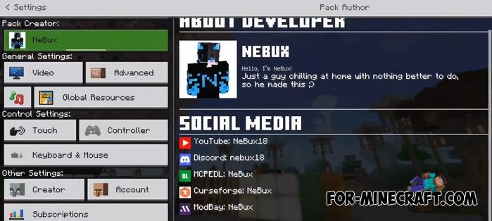 Download NeBux UI Modpack v1.1 for Minecraft Bedrock 1.21