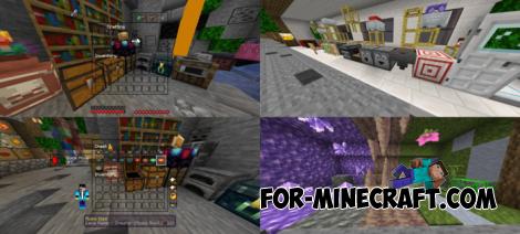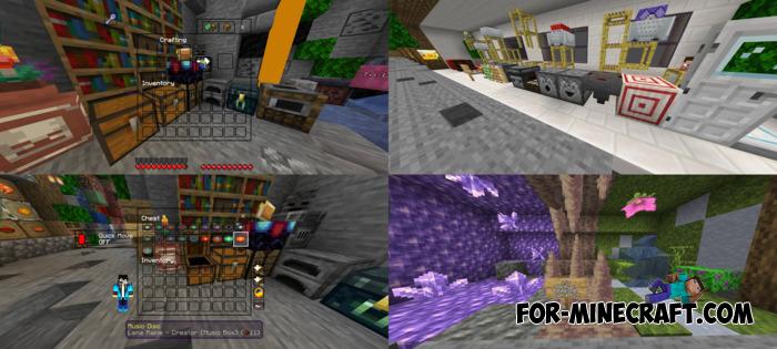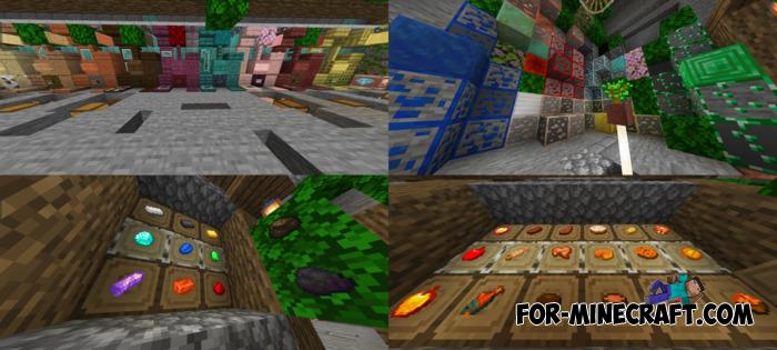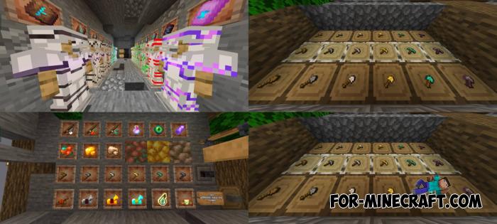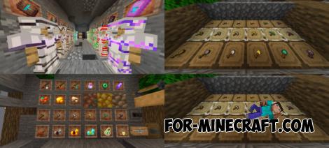 • Item upgrades (detailed potions, maps, spawn eggs, books, eating animations and sounds, item info with stats, advanced bow states, smoother ores, ingots, armor)