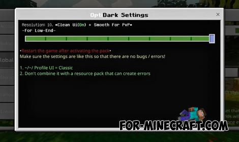 When playing on low-end devices you definitely need a pack like this that solves the problem of low FPS using the standard features of the game. One of them is the OptiDark Addon which works on the principle of Optifine for Bedrock but also additionally comes with a set of configs and GUI features combining all possible ways to boost FPS.