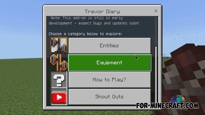 What's important is that Art of Trevor Henderson v2 features a dedicated Trevor Diary menu, which houses all the addon's categories: creatures, equipment, help, and commendations.