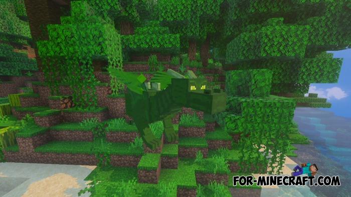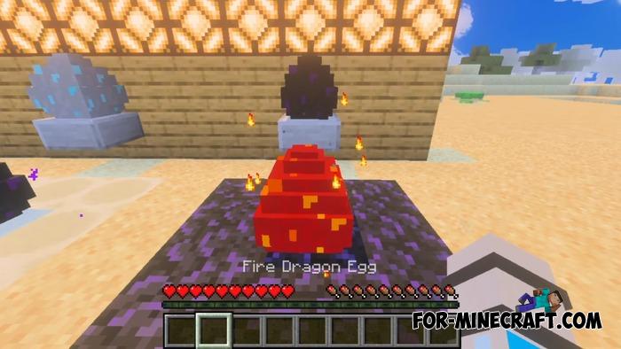 Each type of dragon is unique. The ice dragon flies over snow-capped peaks, the forest dragon hides among the foliage, and the hell dragon feels at home in lava. Each has its own egg and spawn item if you are playing in creative mode or on a server.
