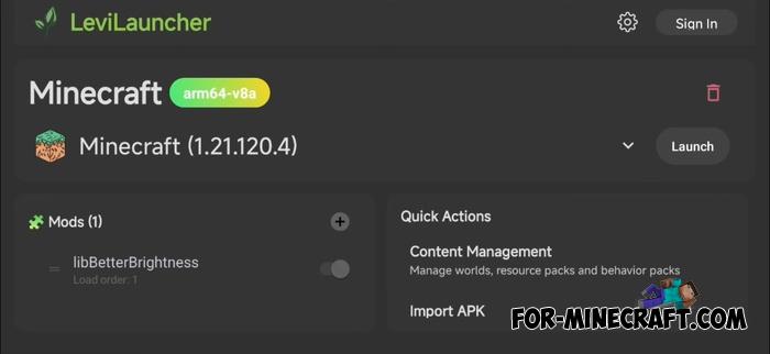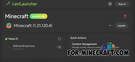 For the mod to work on Android, you will need LeviLauncher and the libBetterBrightness library, which ensure compatibility and stability. The mod does not require activation in resources and works perfectly even on servers.