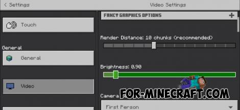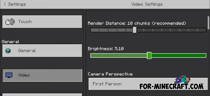 The mod replaces the standard brightness scale, expanding the range from the usual 0-100 to 0-10, where level 1 is equal to the previous maximum in MinecraftPE, and level 10 makes the game ten times brighter, allowing you to completely get rid of shadows and darkness.