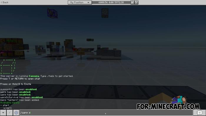 Canopy is a technical mod for Minecraft Bedrock Edition that expands control over internal processes with custom commands, monitoring, tools for creative building, farm optimization, and useful survival features.