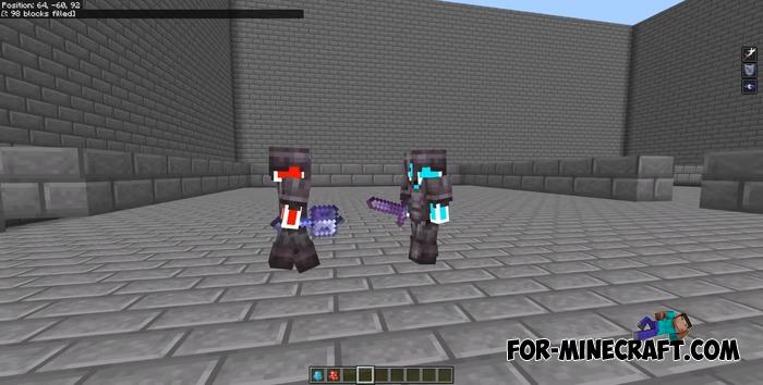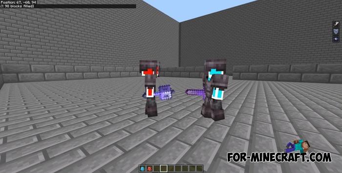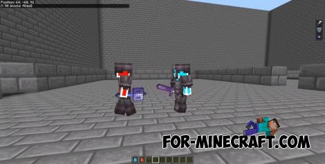 These are not just two mobs, but full-fledged fighters, Human Red and Human Blue, who act almost like live players and can use any item that drops. In essence, it is similar to the Battle Wand Addon, but with slightly different mechanics.