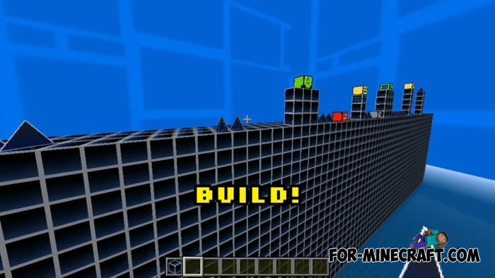 The set of blocks has also been expanded: Geometry Dash Block, Geometry Dash Pillar, Geometry Dash Slab, and Spike. Each of them is suitable for building cubic-style levels, and Spike allows you to recreate traps characteristic of arcade games.