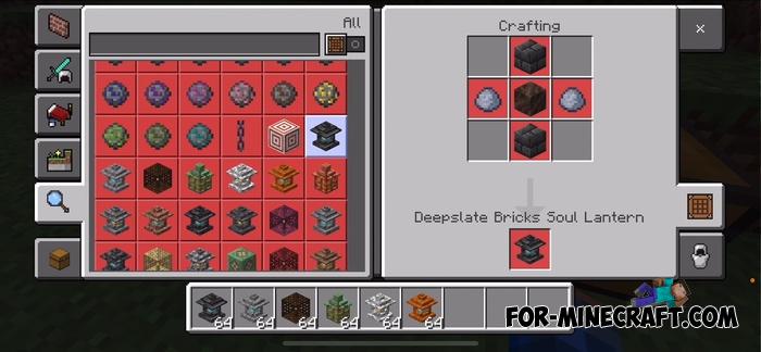 After updates 1.10.1 and 1.11, the add-on began to function as a full-fledged extension of vanilla lamps. Most of them now interact correct with redstone, move correctly with pistons, have redesigned collision sizes and also have wooden models, variations made of stone, copper and even amethyst.
