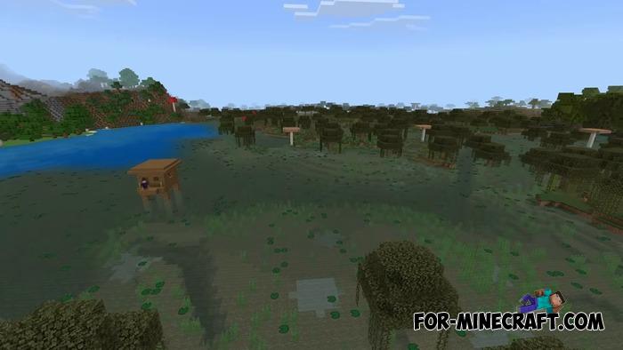 Bog Villages adds unique villages to the swamp biomes of Minecraft Bedrock 26. These settlements blend seamlessy into the gloomy and foggy landscapes of the swamps, creating an atmosphere of rural life where you can meet new residents with professions (no new professions). Villages are randomly generated throughout teh world, but only in swamp biomes.
