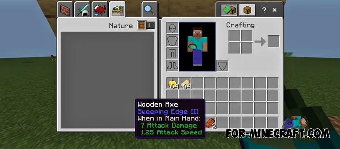 The add-on is based on familiar Java mechanics, which work differently in Bedrock 1.21. The weapon reload indicator tracks the rhythm of the attack, sprint strikes provide realistic knockback, and theres also Sweeping Edge.