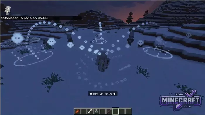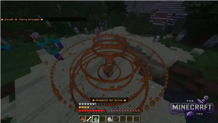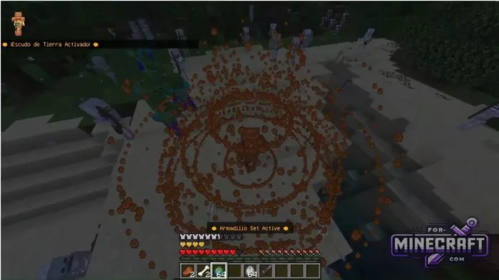 The main feature of Enhanced Armor is active abilities. To activate the "ultimate," hold down Shift and click the right mouse button. At this moment geometric particle patterns bloom around the character. For example, when wearing the Armadillo Set, you create a geodesic dome - the "Earth Shield" which literally deflects arrows flying at you. If you choose the Bone Set, instead of protection, you will gain the power of a necromancer and ghostly altars will grow around you, summoning skeleton assistants.