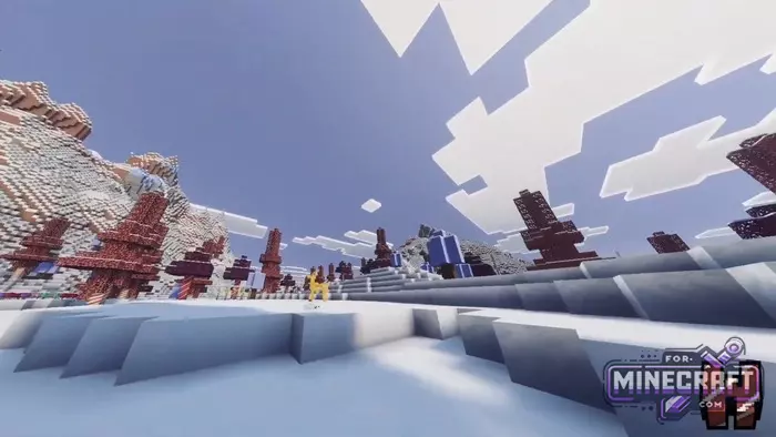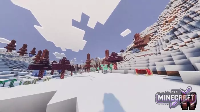 Winter Wonderlands replaces the usual biomes with an endless Christmas fairy tale and turns Bedrock Edition into a place where Yule legends really come to life. This isn't a texture pack or a gift add-on, but a Christmas addon that comes with a set of themed items, mobs and even transport.