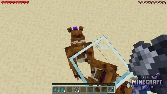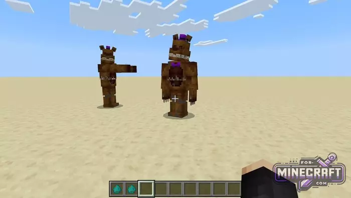 As soon as you load the world, Freddy is already somewhere nearby. He starts stalking you from the very first seconds, constantly testing your nerves and instincts. Among the FNAF projects, there is the FNAF 2 Redesign Map, which works great for the new mobs.