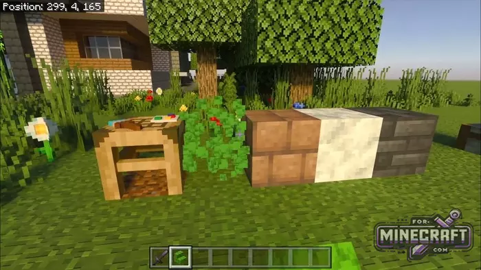 The add-on adds new building elements such as steps, regular and vertical slabs, and a bunch of other stuff, like a thousand blocks. For convenience everything is done through a stone cutter which is much faster. By the way doors and hatches now behave correctly, and if you place two doors next to each other they will open simultaneously; just like in the Java version.
