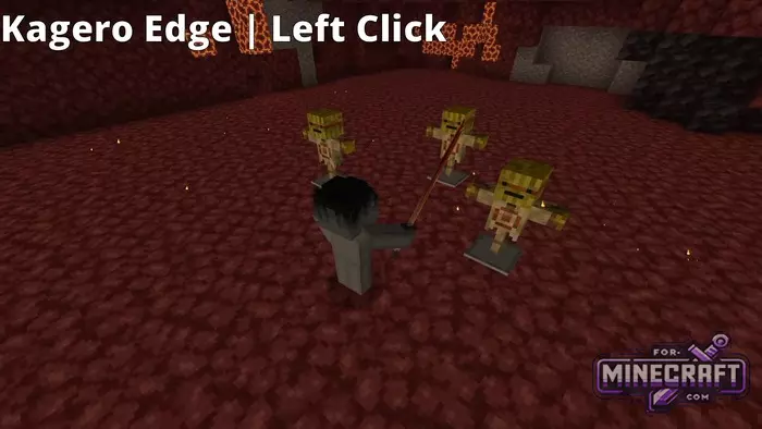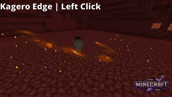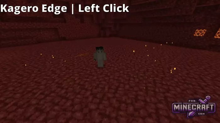 The Kagero Edge's basic strike is triggered with a regular left click - the character performs fast lunges, leaving behind sparks and fiery trails. The right mouse button activates Enjin Rinbu, creating a wide ring of flame around the player
