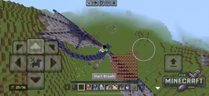 It all starts with an egg. You can find them in the world or use spawn eggs in creative mode. Baby dragons behave differently then adults and follow their owner everywhere. As they grow, their behavior changes they become more powerful and gain the ability to fly with the player.