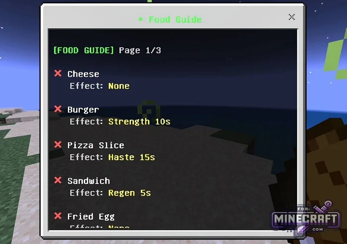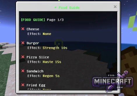 If you eat sushi, you will temporarily gain water breathing, a burger will give you a strength boost, a slice of pizza will let you mine blocks faster, an energy drink will give you a speed boost, and so on. However ice cream, although it restores health, can cause a temporary slowdown - the brain freeze effect.