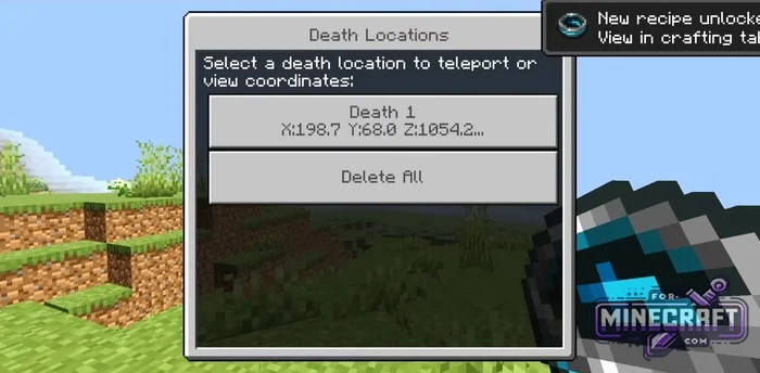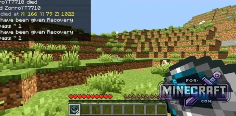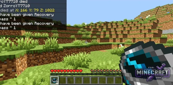 - Coordinates are displayed in the chat, and a working recovery compass helps you find the place of death.