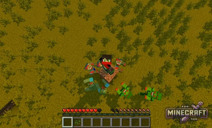 If the zombies in Bedrock seem harmless to you, install Mo' Zombies-it'll fix that in a single night. This mod makes survival more terrifying by adding dozens of infected types and bosses, all while using standard MCPE mechanics.
