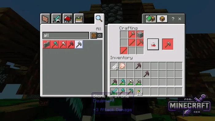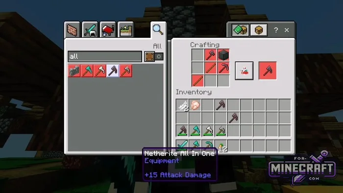 What do a pickaxe, a shovel, and an axe have in common? They all use the AIOT Addon, which solves the problem of cluttered hotbars. This addon introduces "paxels" multi-purpose tools to Minecraft Bedrock 26.20. A single tool replaces almost the entire standard set, as it digs the ground, chops wood, and mines stone equally well.