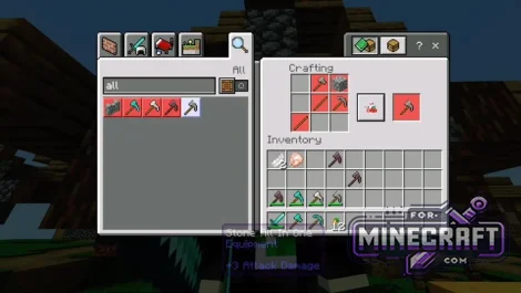To create emerald or amethyst tools, you need to collect the top and bottom parts of the Paxel head separately. At the smithing table, you can upgrade items-for example turn a diamond blank into a netherite one using a template.