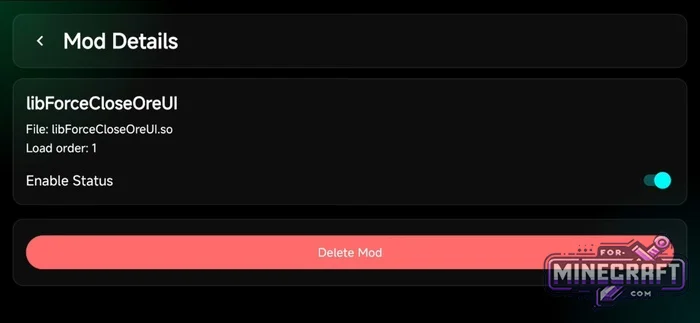 On Android, do it via LeviLauncher (download the launcher for Minecraft Bedrock 26.12). The SO file format just open it through the launcher for import. After that, the "Enable Status" switch will appear in the Mod Details menu.