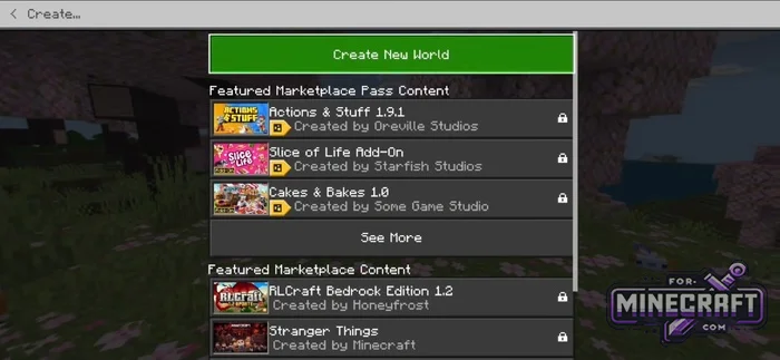 It interferes with the game's loading process and blocks the OreUI from launching-simple as that. As a result, you get the old menu, which works more naturally. After activating the mod, the classic server selection window with buttons and friend list returns. Also, the world creation tab comes back without extra submenus.