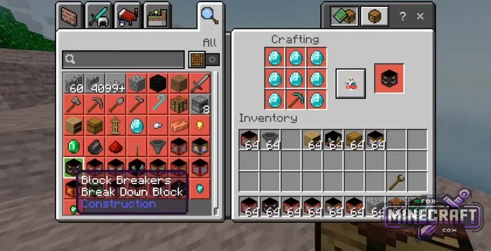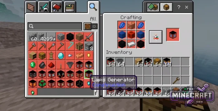 So, generators gradually produce everything from regular dirt to diamonds, gold, and redstone. Special block breakers (Block Breakers)-they break whatever appears beneath them and turn it into drop items. If you combine this with new types of sieves (regular and iron), you can sift through dirt or gravel to obtain valuable mineral chunks and nuggets.