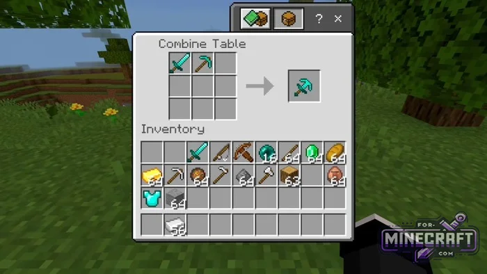 Craft a special block called the Combine Table. It is crafted from a regular workbench surrounded by iron ingots. In it you can combine items available in the latest update.