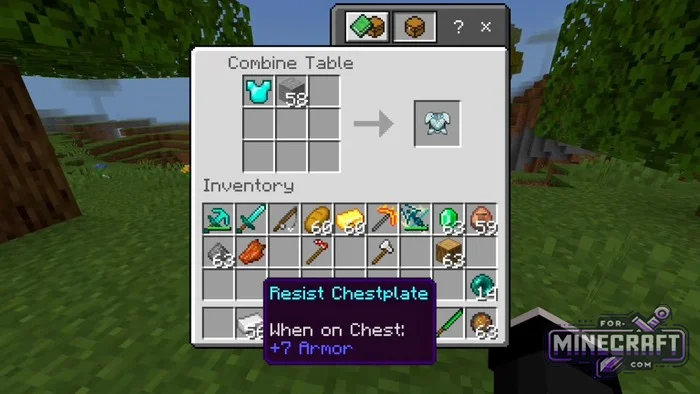 - The Resist Chestplate is crafted from stone and diamond armor.