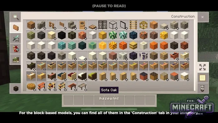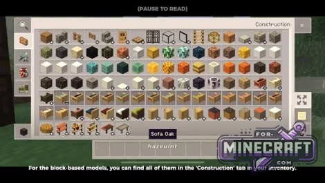 - Sofa (variants in acacia, birch, dark oak, oak, spruce)