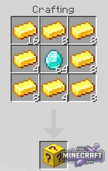 This is a big addon that brings 15 different craftable lucky blocks. All recipes are listed below, and the events and results of opening directly depend on their type.